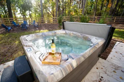 Beautiful, pristine, well decorated, super clean place. Beautiful house, super comfortable, everything functional, easy to use. Great location. Large windows, tall trees, private. The Jacuzzi and the game room were fantastic! Brian and Aaron are super proactive and responsive hosts. Highly recommend this house!