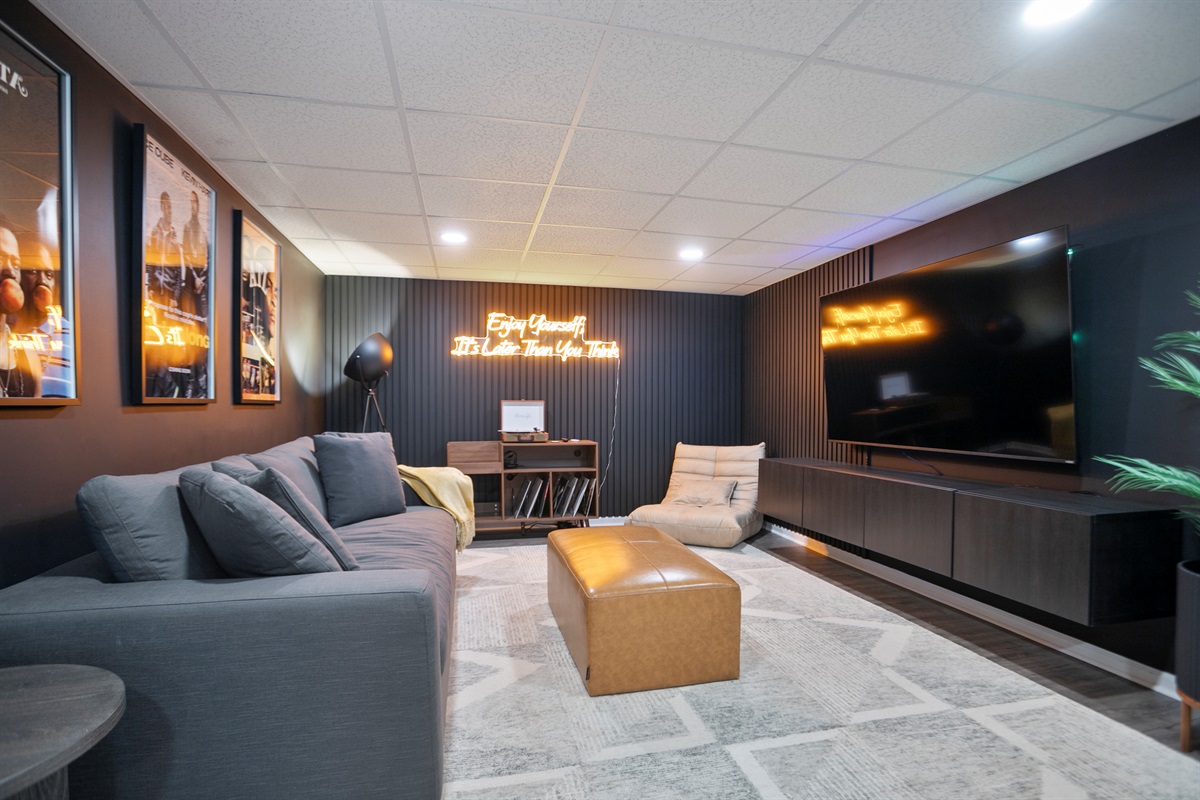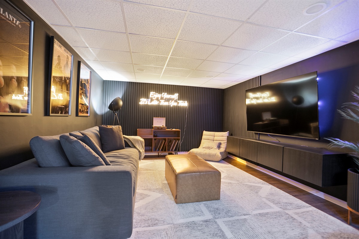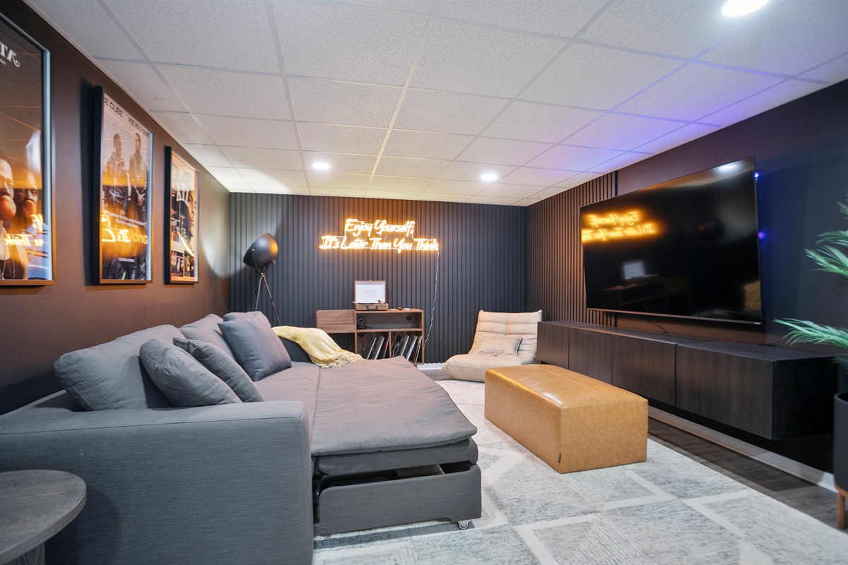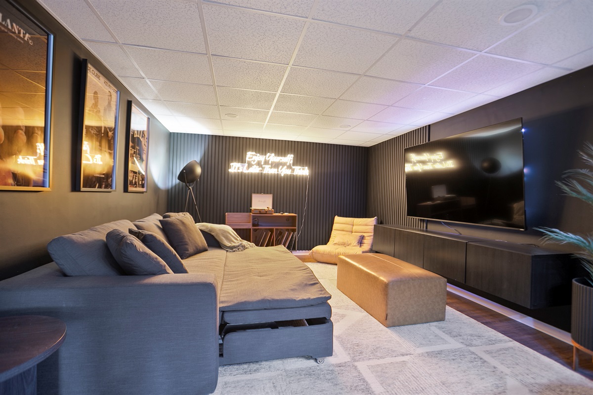 - Media Room: Kick back in our cozy media room featuring a 70-inch Smart TV and a plush queen-sized pullout bed—ideal for movie marathons or binge-watching your favorite series.