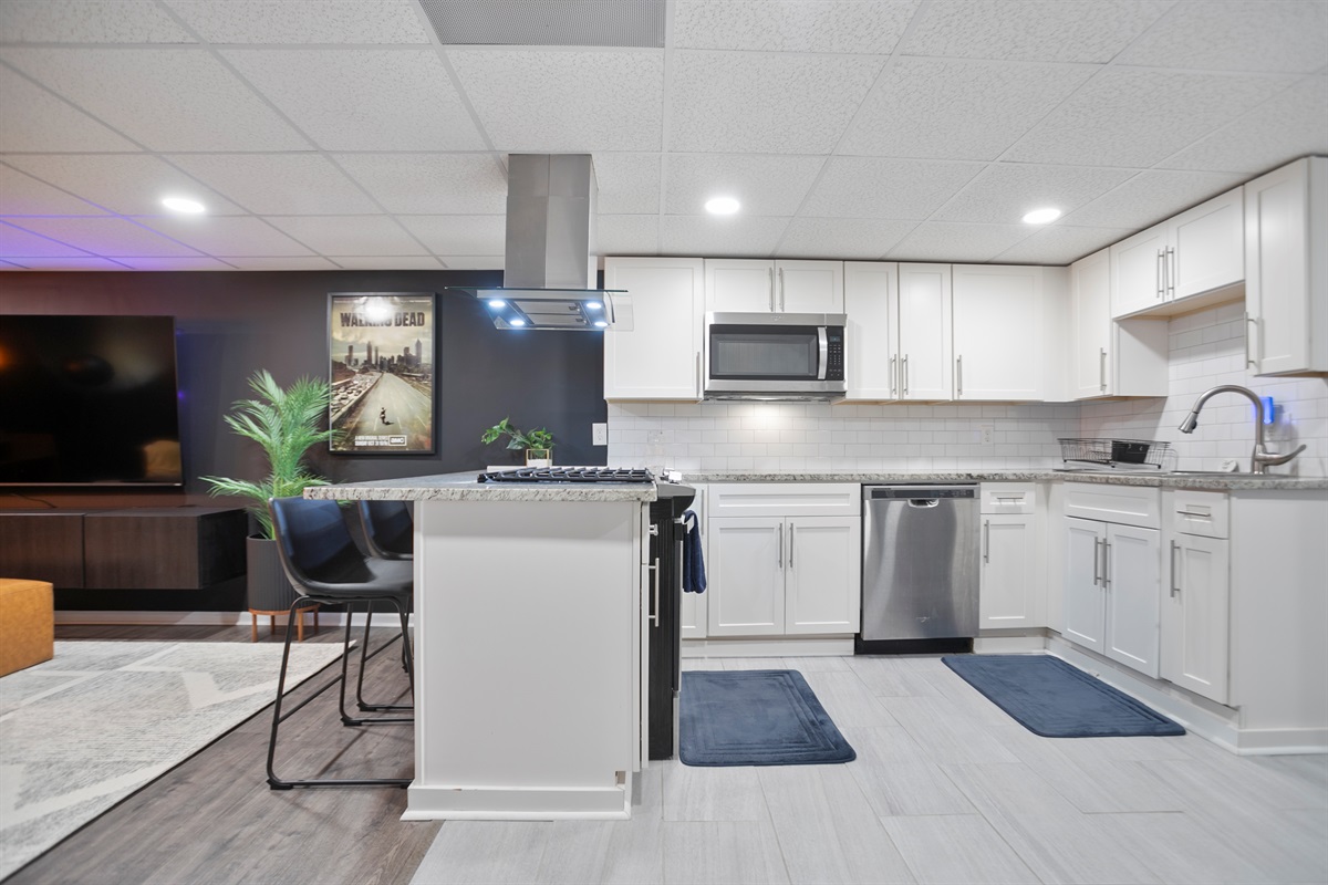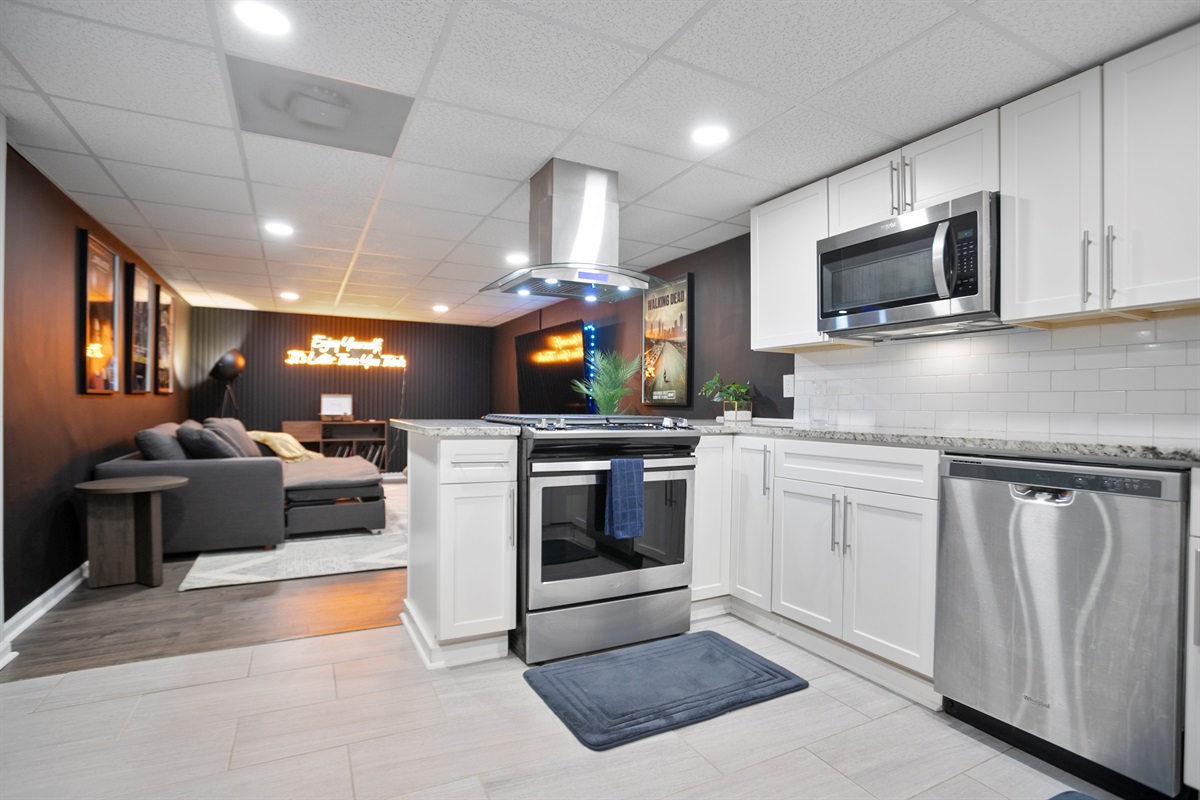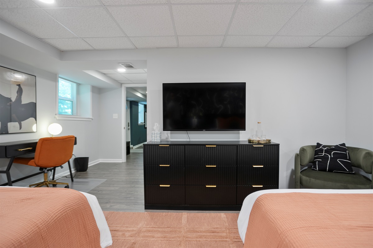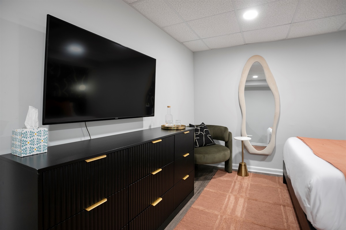 - Media Room: Kick back in our cozy media room featuring a 70-inch Smart TV and a plush queen-sized pullout bed—ideal for movie marathons or binge-watching your favorite series.