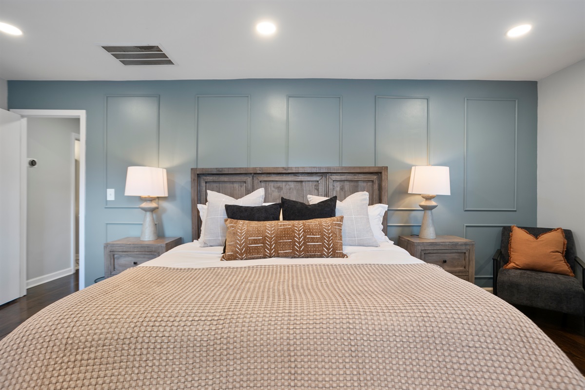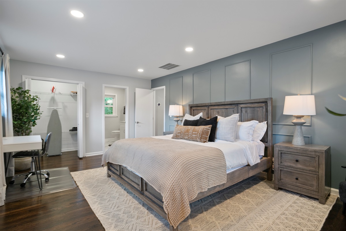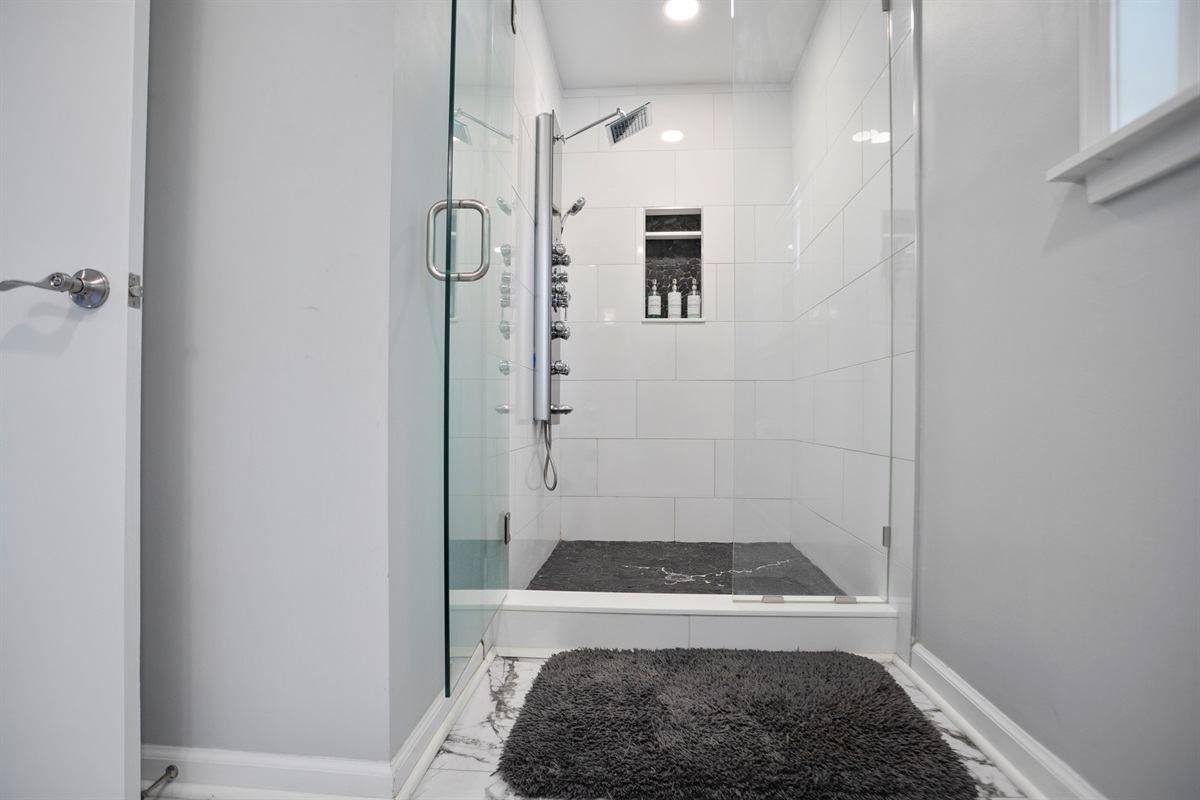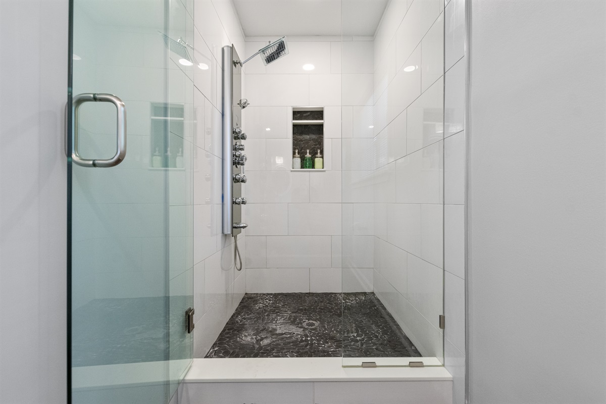 Unwind after a long day exploring the city in the luxurious master suite, featuring a king-sized bed and an incredible spa shower with 12 rejuvenating shower heads.