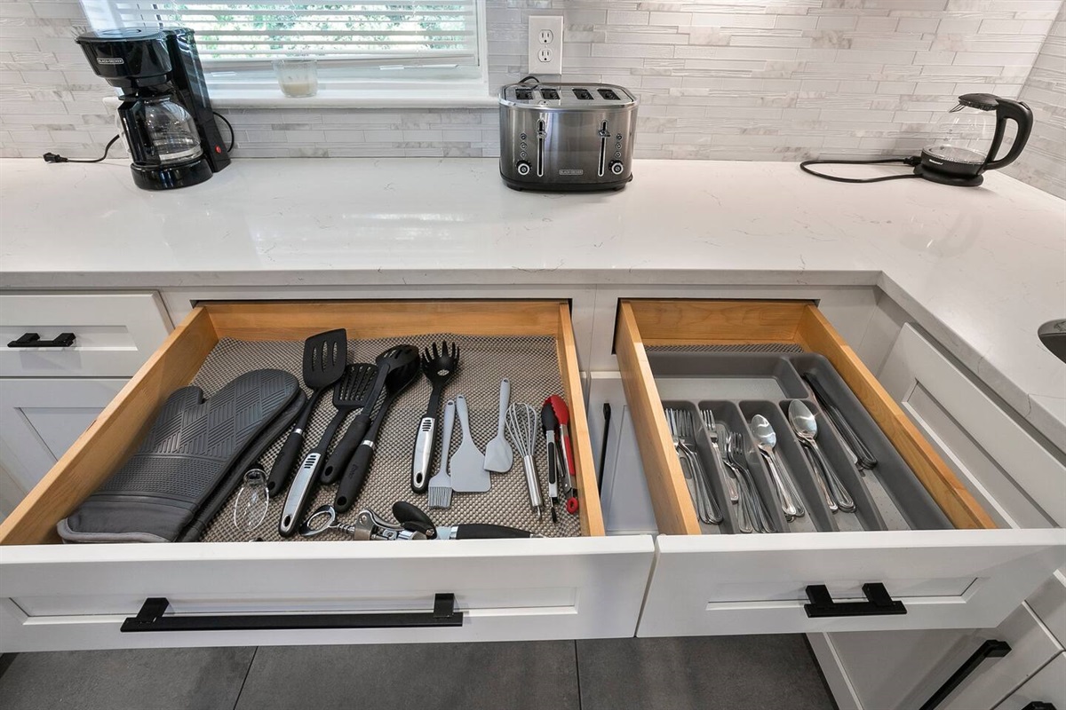 • Fully equipped + stocked kitchen