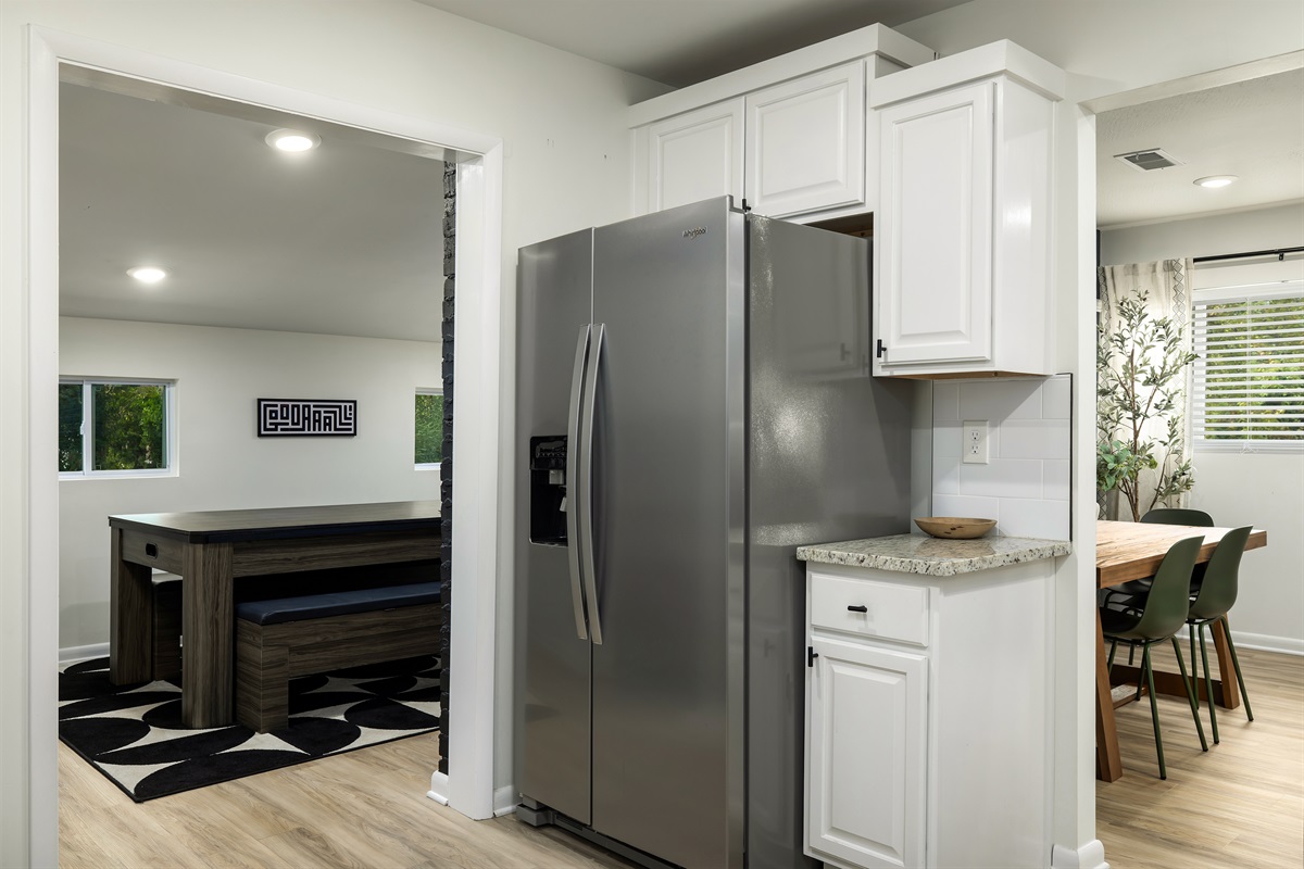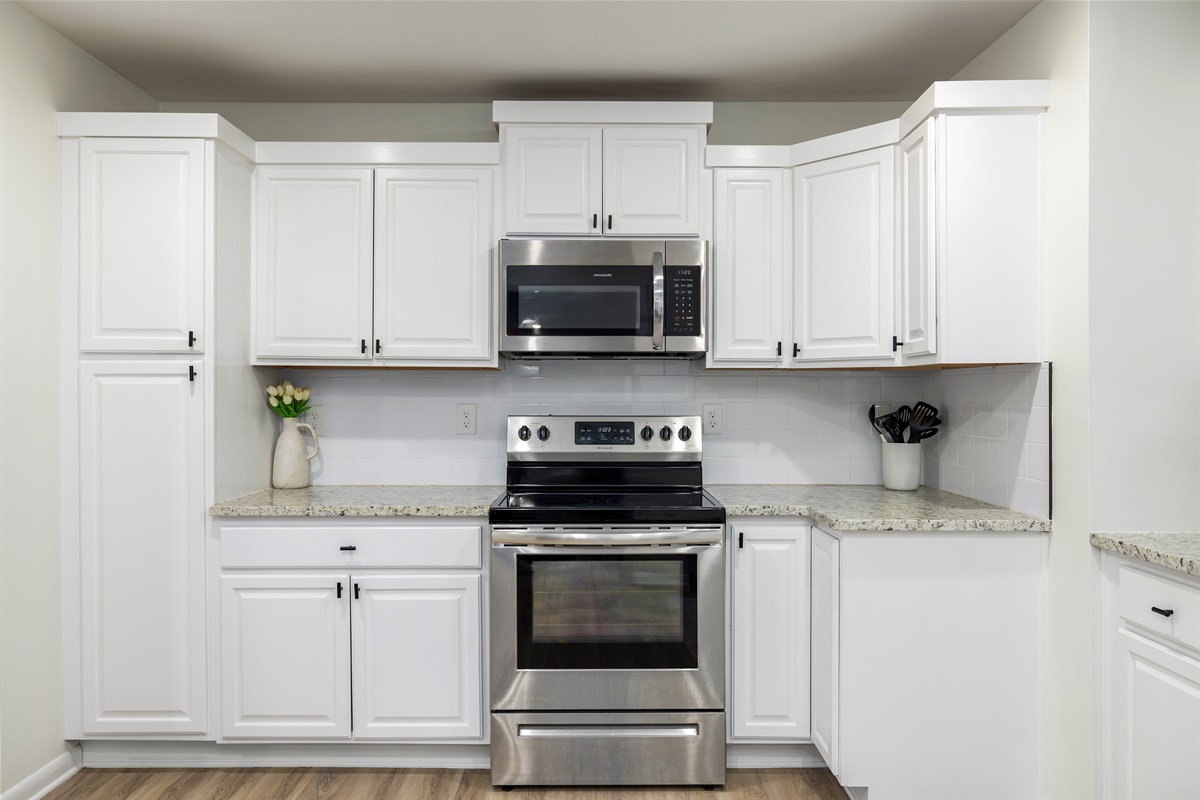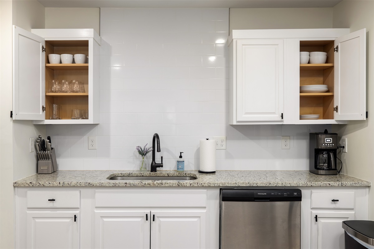 The fully equipped kitchen features stainless steel appliances, granite countertops, and everything you need to cook up a great meal — whether it’s a quick breakfast before the game or a home-cooked dinner after a long day.