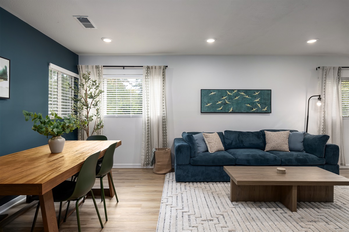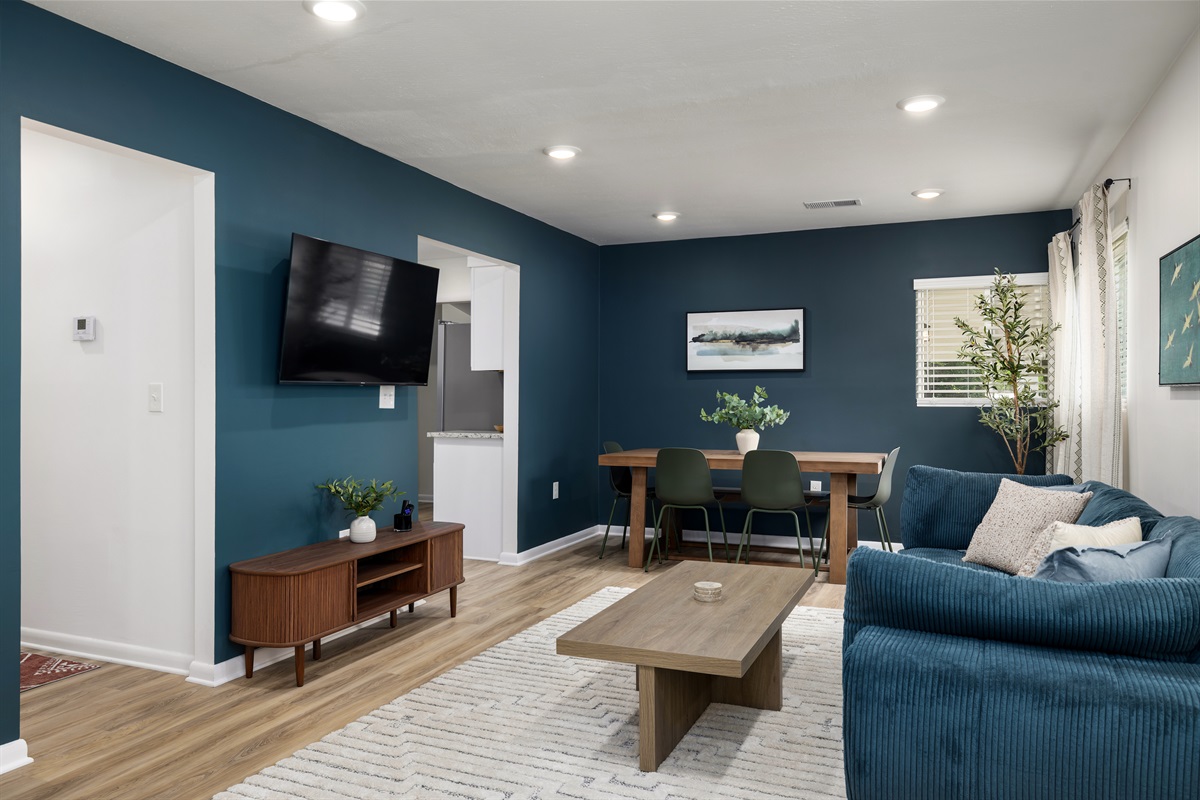 Step inside and you’ll find an open-concept living area with modern finishes, cozy furnishings, and natural light that makes every corner feel like home. Stream your favorite shows on the Smart TV, or unwind with friends and family in the spacious lounge after a day exploring the city.