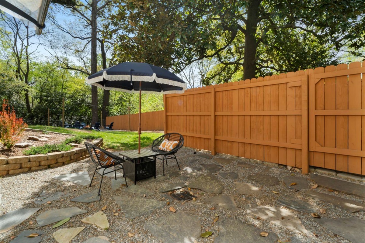 • Fire pit area with string lights
